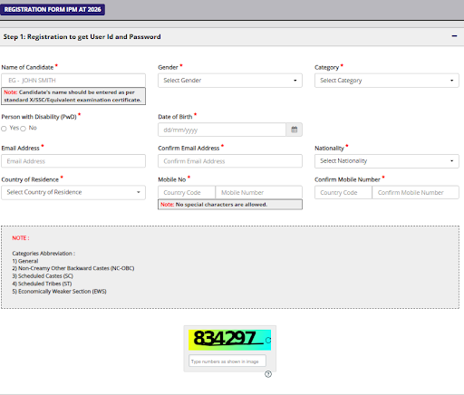 For IPMAT registration 2026, candidates are required to have passport-size photograph, scanned signature, class 10th and 12th mark card (or appearing certificate), valid proof of ID, and category certificate (if applicable).