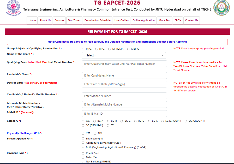 TG EAPCET 2026 registration started! Apply online at eapcet.tgche.ac.in before the April 4 deadline to avoid late fees. Get the direct application link, fee details for OC/BC/SC/ST, and step-by-step instructions for the 2026-27 session.
