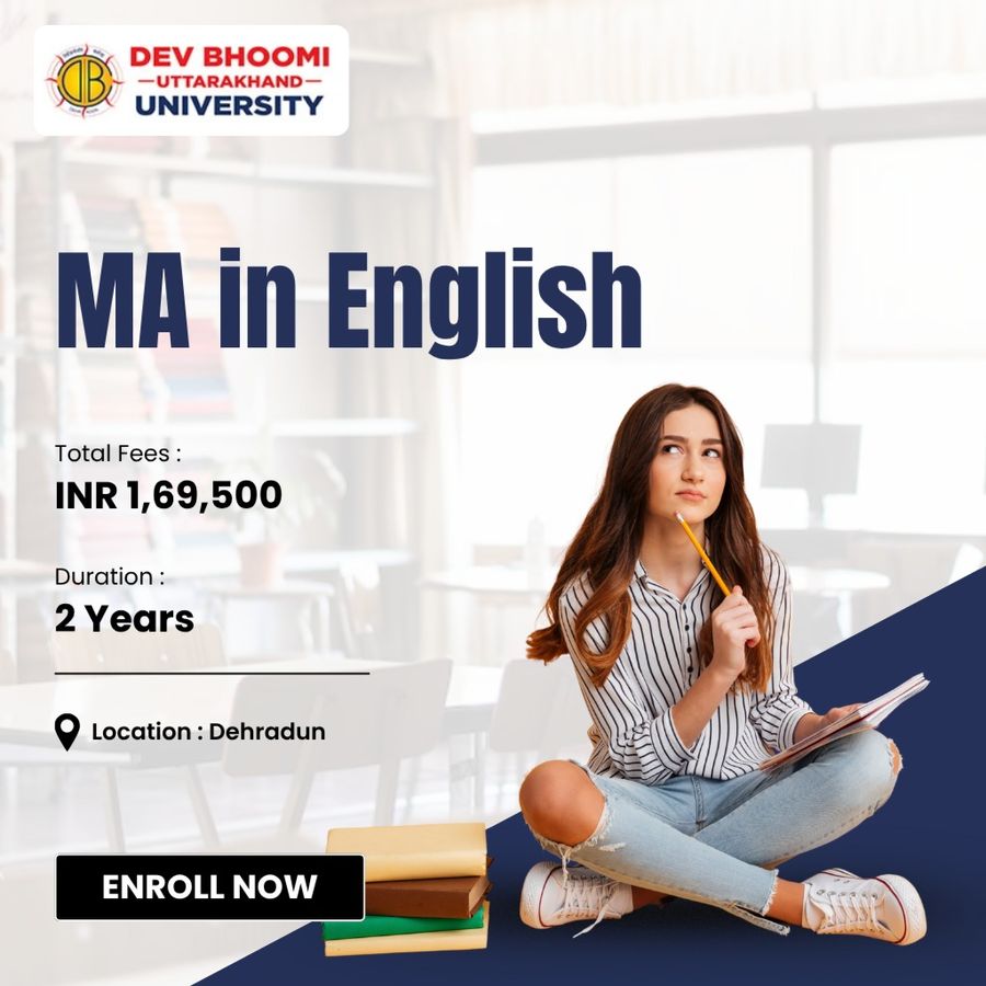 Highlights The MA English program at the School of Journalism & Liberal Arts, Dev Bhoomi Uttarakhand University, is a thought-provoking postgraduate journey into the world of literature, language, and culture. Covering classical to contemporary works, linguistic theory, and literary analysis, the course enhances your communication skills and critical thinking. It’s designed to develop articulate storytellers and insightful thinkers who can interpret and shape the world through words.