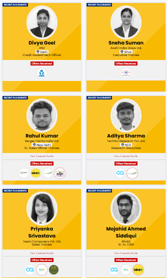 Many well-known companies from different sectors visit the campus for recruitment. Students are offered roles in areas such as marketing, finance, business analytics, consulting, operations, and sales. Some of the prominent recruiters include Berger Paints, ANZ Bank, Tata Group companies, ITC, HDFC Bank, Deloitte, Decathlon, Blinkit, and InfoEdge, among others.
