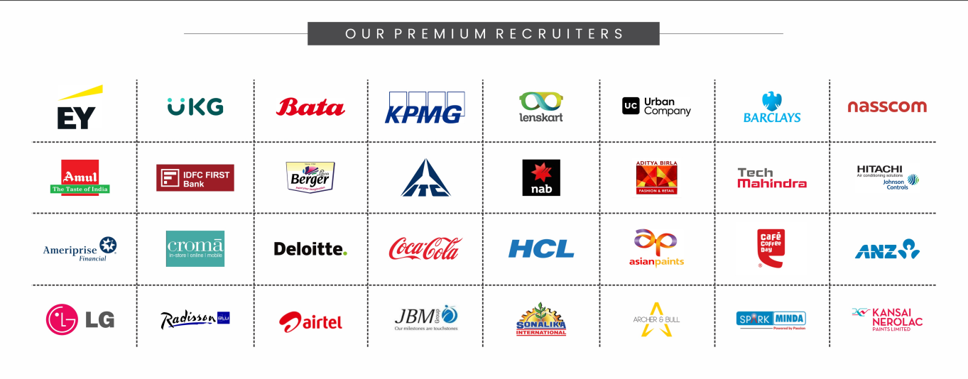 Many well-known companies from different sectors visit the campus for recruitment. Students are offered roles in areas such as marketing, finance, business analytics, consulting, operations, and sales. Some of the prominent recruiters include Berger Paints, ANZ Bank, Tata Group companies, ITC, HDFC Bank, Deloitte, Decathlon, Blinkit, and InfoEdge, among others.