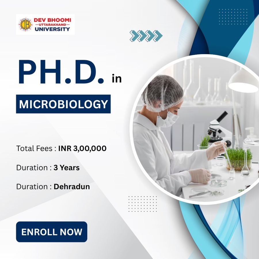 Highlights The Ph.D. in Microbiology at DBUU is a full-time, 3-year doctoral program aimed at those fascinated by the microbial world—from bacteria and fungi to viruses and algae. Designed to blend theory with practice, it includes coursework followed by deep-dive research in areas like microbial genetics, ecology, biotechnology, and environmental diagnostics. You’ll conduct experiments, analyze data, and contribute to real-world solutions under the guidance of experienced faculty. The program is enriched with workshops, industry visits, and academic seminars. Perfect for future microbiologists, researchers, and biotech professionals.