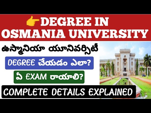 https://youtube.com/watch?v=mgMCw-v75ZE Degree Admission Process in Osmania University The video outlines the entire process for degree course admission at Osmania University in 2025. It describes eligibility, application procedures, and supporting documentation. It provides information on the CPGET (Common Post Graduate Entrance Test) admission process and also provides information on how to apply for the integrated degree admission process in Telangana. The video highlights aspects of registering online, submitting certificates, and selecting degree courses. The video provides information addressing FAQs and the options for undergraduate programs at Osmania University, along with what exams are necessary for enrollment in those courses. Contact numbers and Telegram group links are provided for further student support and updates.