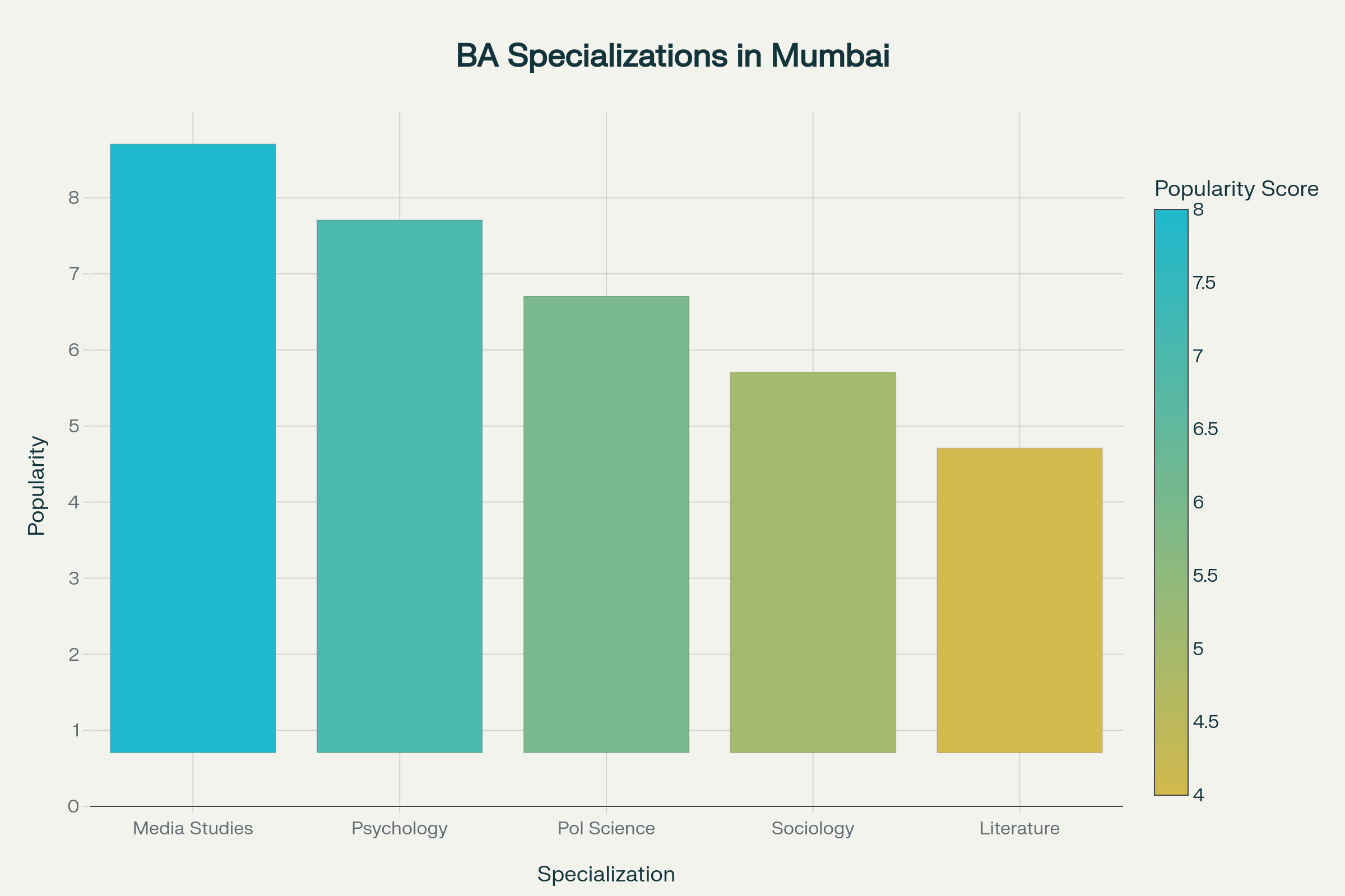 BA programs in Mumbai offer a variety of trending specializations such as Media Studies, Psychology, Political Science, Sociology and Literature. Choosing a specialization depends on career goals and colleges often provide guidance to align student interests with industry demands.