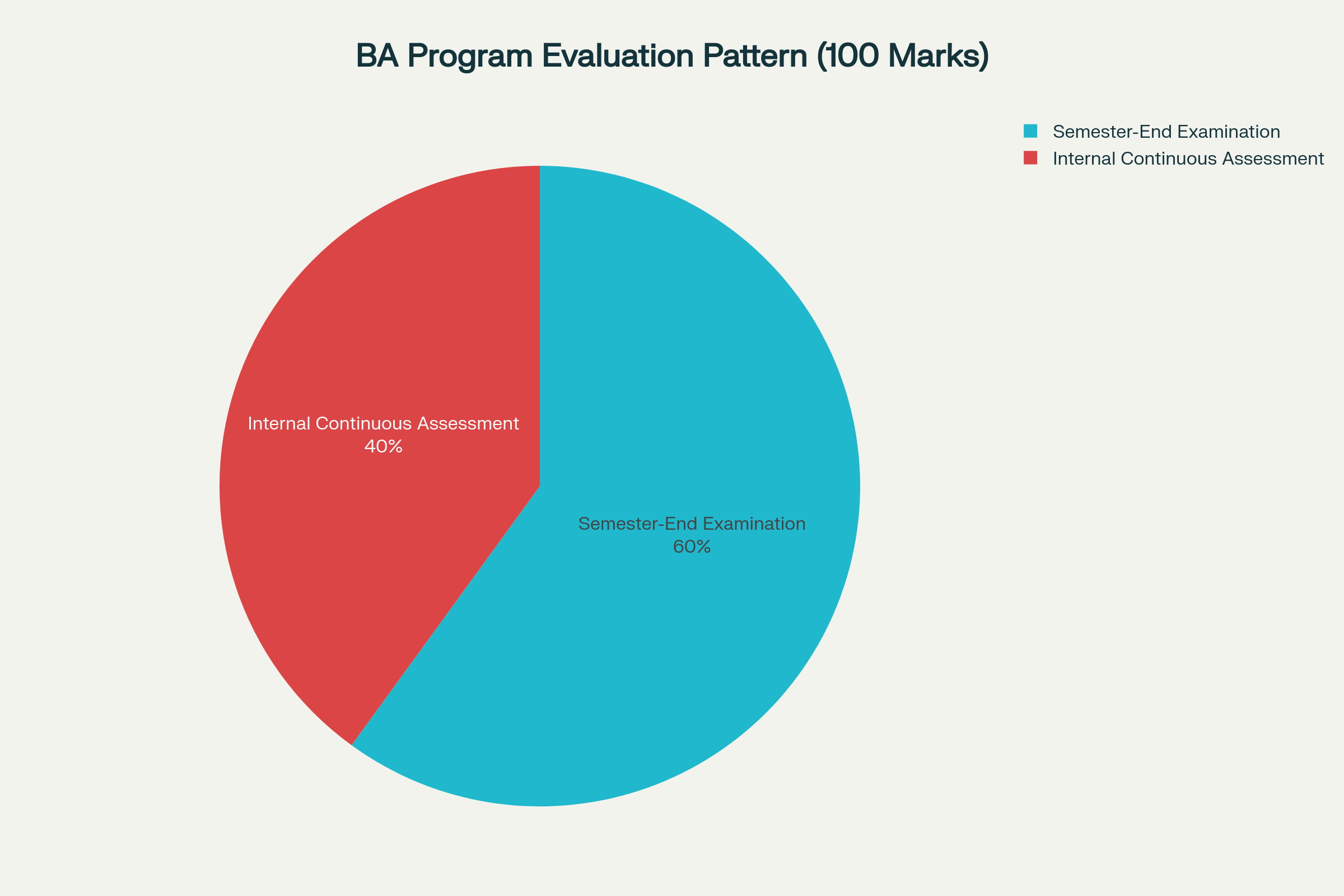 What is the semester-wise breakdown of workload and examination patterns for BA students?