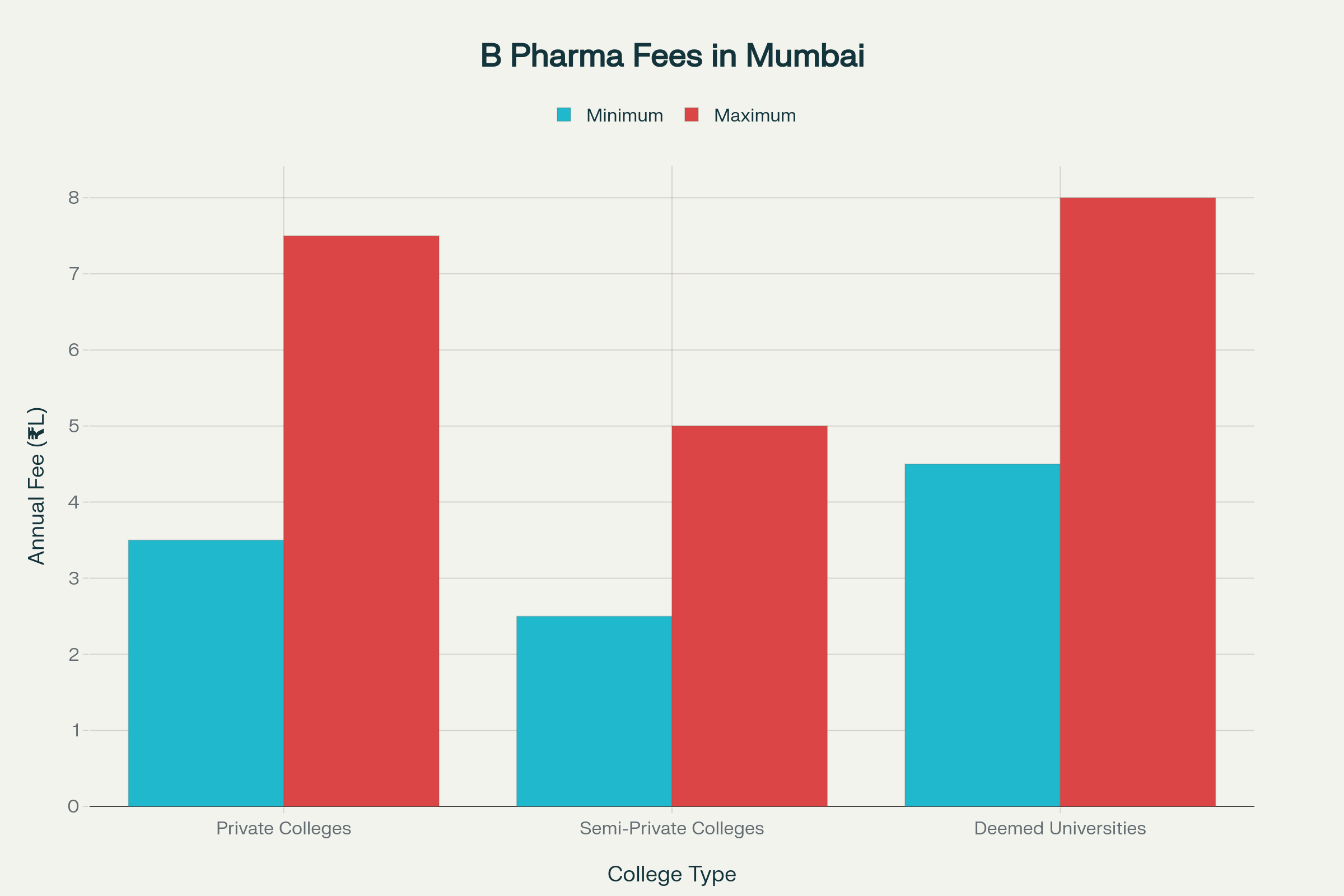 Average annual fees in Mumbai B Pharma colleges range ₹2.5-7.5 lakhs depending on college category. Private colleges charge higher fees while semi-private institutions offer moderate rates. Scholarship opportunities include merit-based awards up to 50% fees waived. Below Poverty Line (BPL) students receive special consideration. Sports scholarships available for athletic candidates. Entrance exam toppers receive additional financial aid. Educational loan schemes from banks make education affordable. Always verify scholarship criteria directly with college authorities.
